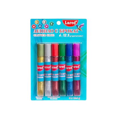 Комплект 6 цвята лепило с брокат