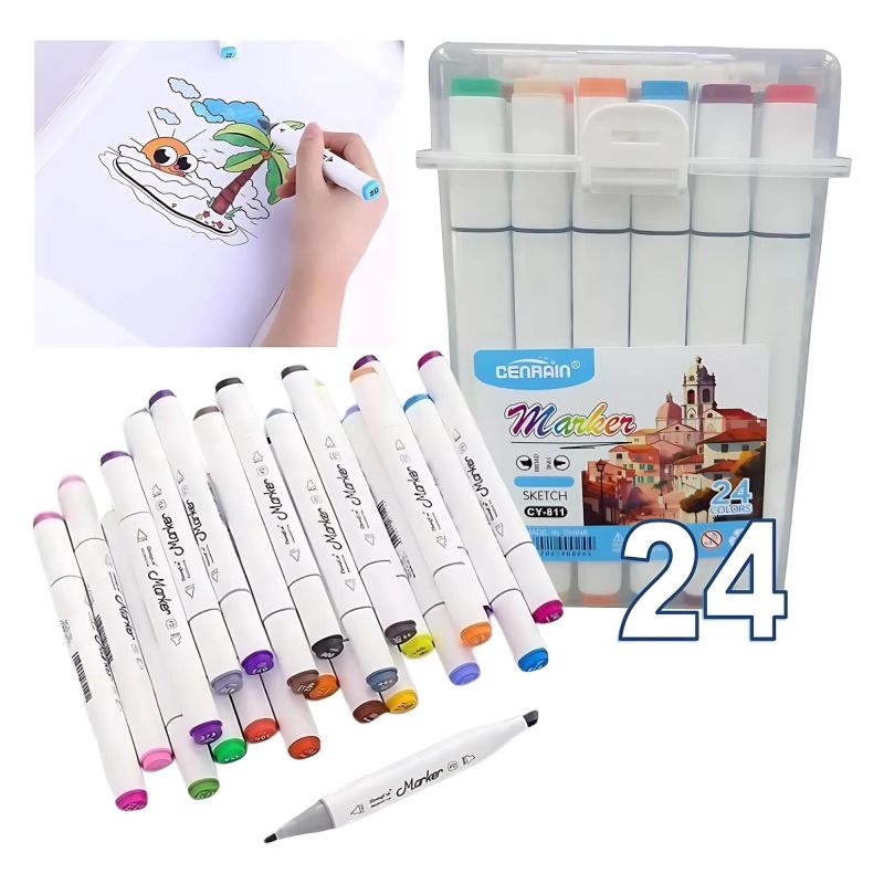 Начало Пишещи Акрилни и алкохолни маркери Комплект алкохолни двувърхи маркери 24 цвята