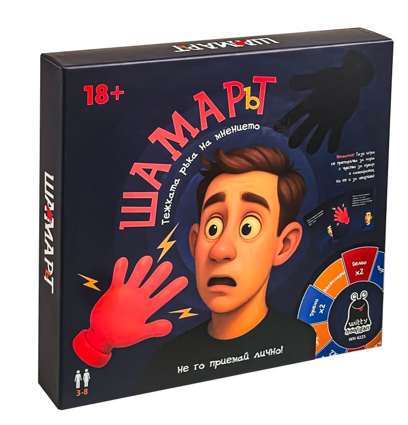 Всички смятаме, че искаме да чуем истината, но не винаги сме готови да я приемем. Е, в тази игра, истината е субективно понятие. В „Шамарът“ участниците ще разполагат с голяма надуваема ръкавица, с която ще „шамаросват“ играчът, който по тяхно мнение, смятат, че е най-палав в леглото например или е най-вероятно да се скатава по време на работа. Маските подпомагат елемента на изненадата от шамар, а картите предлагат разнообразие от въпроси, касаещи се само до присъстващите, които могат да са както ласкателни, така и обидни. Дали ще отговорите, „шамаросвайки“ някого или ще предпочетете да спестите мнението си и да свалите дреха от себе си – това решение оставяме на вас. Играта е за хора над 18 години, като в нея могат да участват 3-8 играчи. Съберете приятелите си, по възможност – по-широкоскроените сред тях, и си раздайте по няколко откровени шамара.