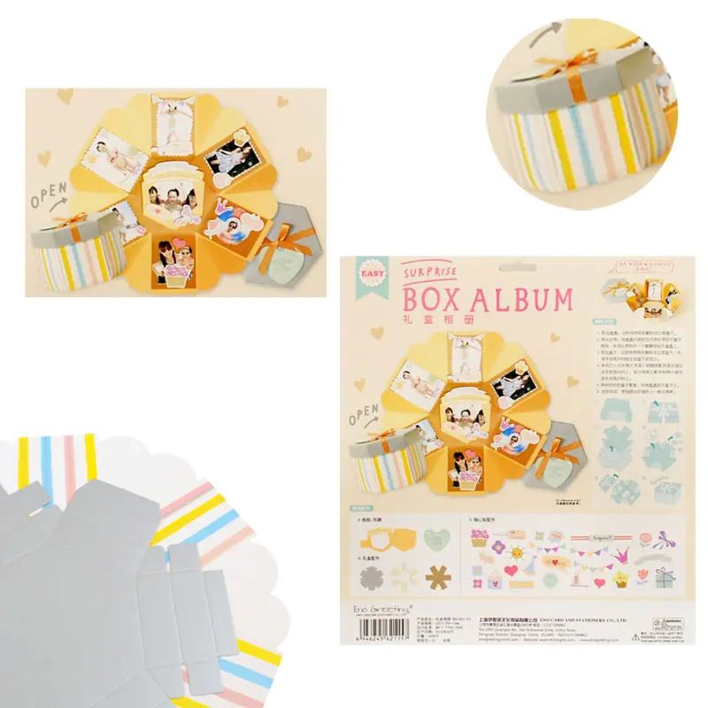 Kрафт комплект за "Скрапбукинг - Снимков албум - Картичка в шестоъгълна кутия" с елементи за декорация.