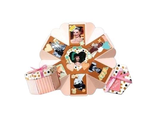 Kрафт комплект за "Скрапбукинг - Снимков албум - Картичка в шестоъгълна кутия" с елементи за декорация.