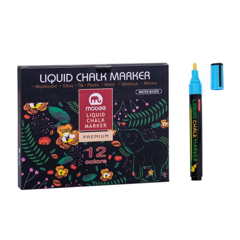 Течният тебеширен маркер. За писане върху тъмни или черни и бели дъски, прозорци, стъкла и огледала. Устойчив на светлина, може да се изтрие от почти всички повърхности с помощта на влажна кърпа.
