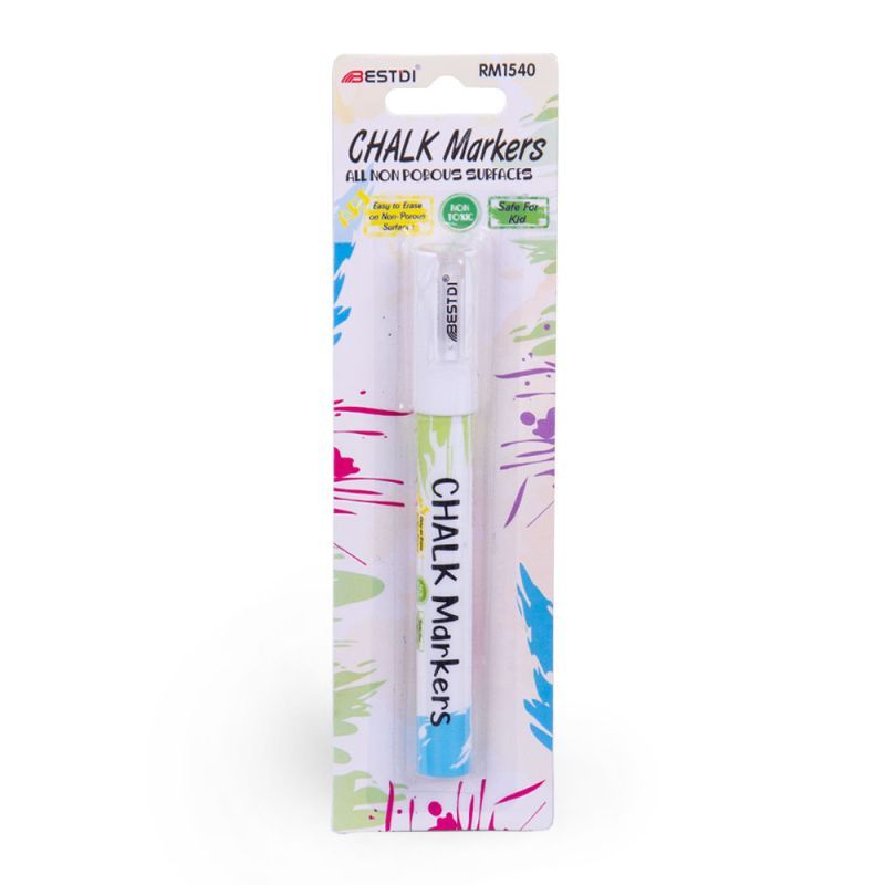 Течен тебешир, който може да се изтрие от почти всички непорести повърхности с влажна кърпа.