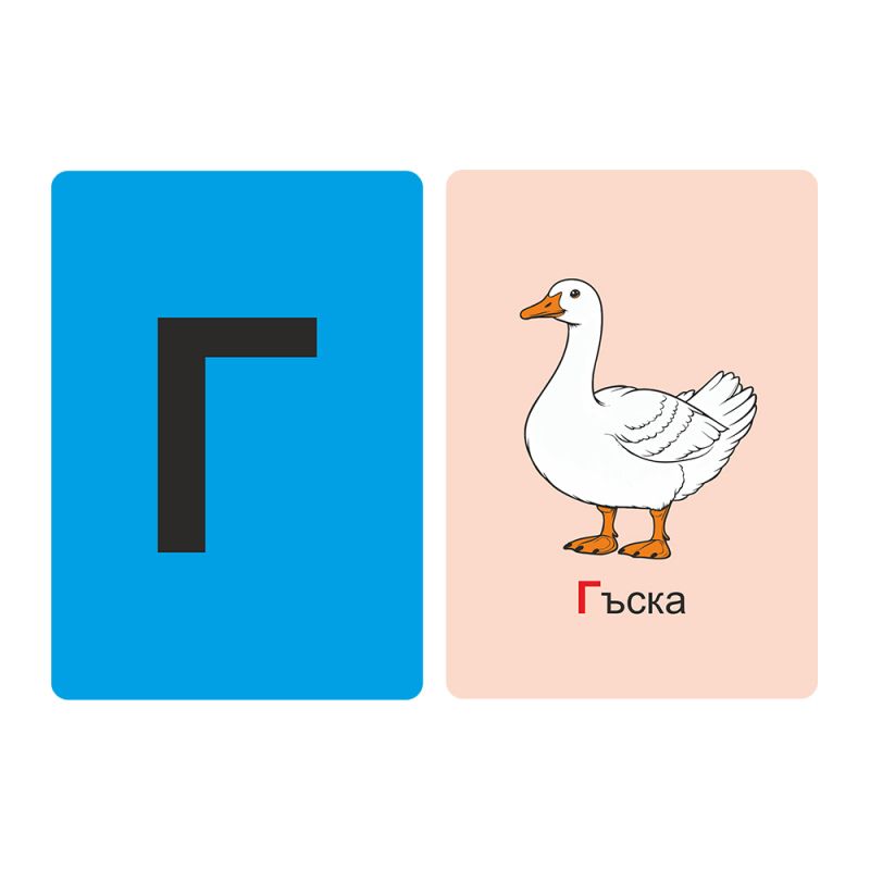 Всяка карта съдържа буквата от едната страна и илюстрация на предмет или животно, започващи с тази буква, от другата. Това помага на децата да свържат звука и символа с реален образ и улеснява запомнянето.
