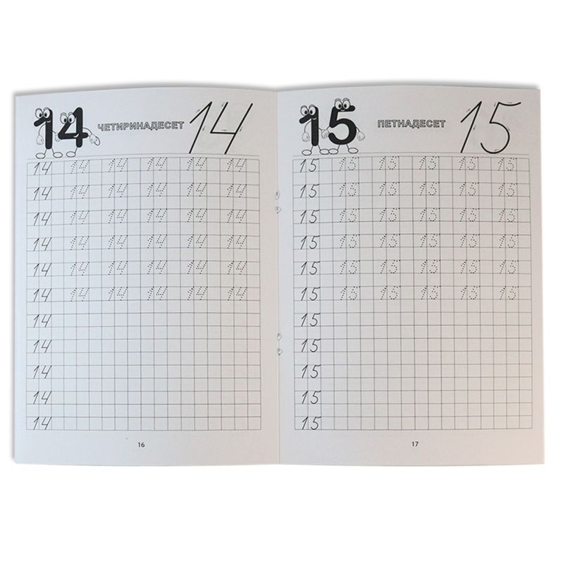 Съставена е от 32 страници, като първата съдържа указания за изписването на знаците плюс, минус, равно, по-голямо и по-малко ( +,-,=, >, <) чрез контури, а следващите съдържат указания за изписването на числата от 0 до 30. Най-отгоре всяко число е изписано и с думи и е изобразено по два начина- забавен (числата са представени като усмихнати, живи фигурки) и обикновен.
